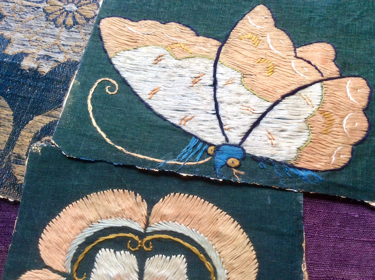 Naturally dyed old textiles that we find today as small fragments often are very attractive and bring about the ambiance of the era they came from. The texture of the thread is distinctive and the natural dye used profound and transparent. No matter how small the fragments are, they all have unique sense of each time period: be it a temple, exotic foreign countries, ordinary people’s and upper class people’s lives, regardless of the hierarchy and its origin, the fragments all have common ambiance from the time period they are from.