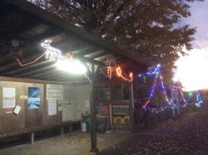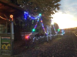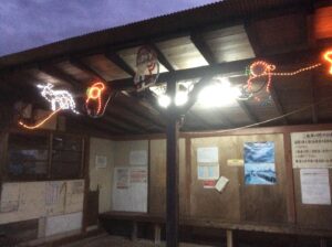 でも、イルミネーションは夜にならないとと思い、観れることはないだろうと思っていました。 この日、私の好きな場所に出かけてゆくと、無人の駅舎に飾り付けが施されていました。 これだけでも、まあ、なんて良い飾り付けだろう、と思いました。