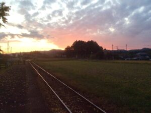 秋とは異なり、これから夏越の祓という季節では、夕方の陽も長くまだ明るく、再び小湊鉄道に揺られて五井駅へと戻りました。この日車窓から見た夕焼けは、すでに夏の夕暮れのような鮮やかな空の色でした。